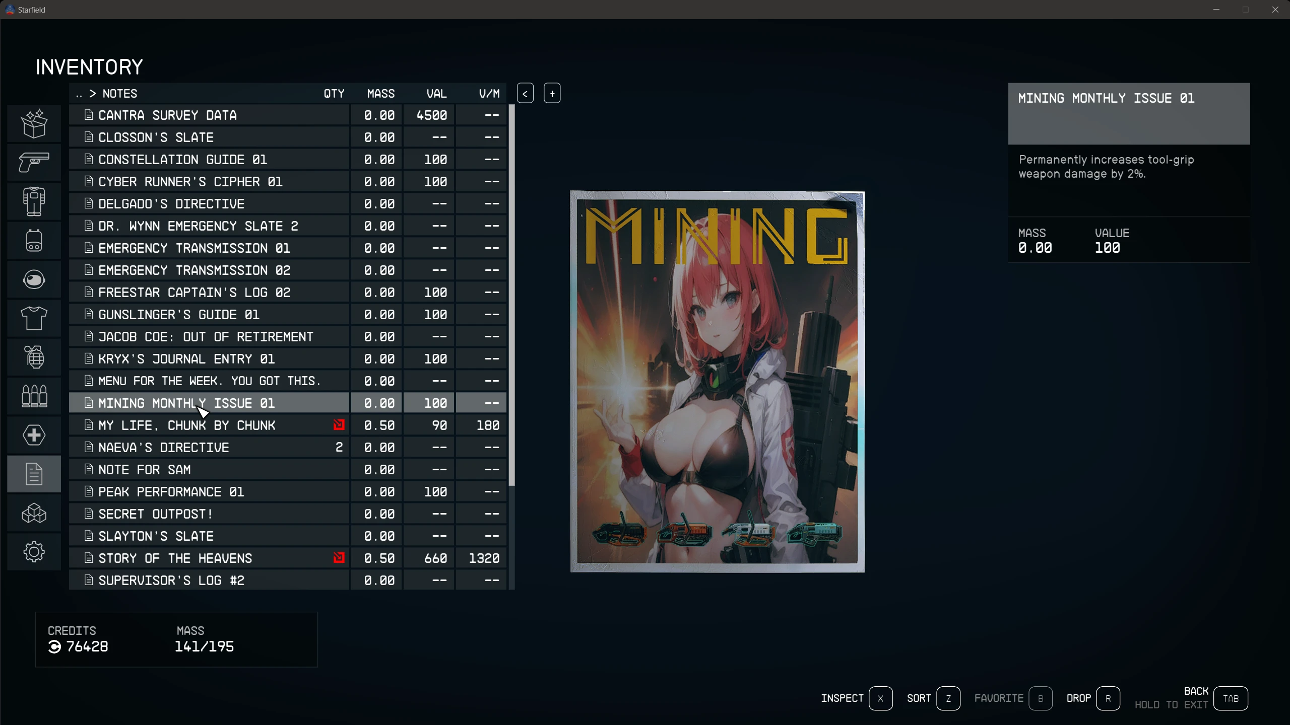 スターフィールドの【雑誌をNSFW アニメイラスト 】に変更するエロMOD。