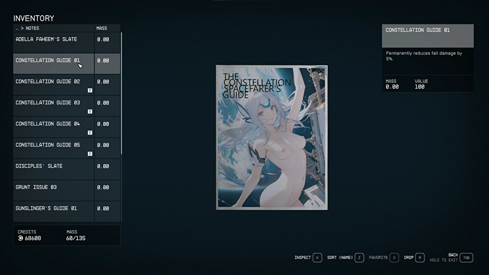 スターフィールドの【Constellation Spacefarer のガイド雑誌のテクスチャを nsfw の表紙】に変更するエロMOD。