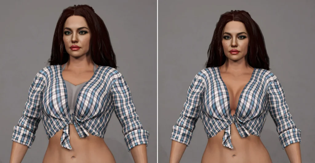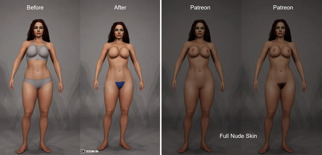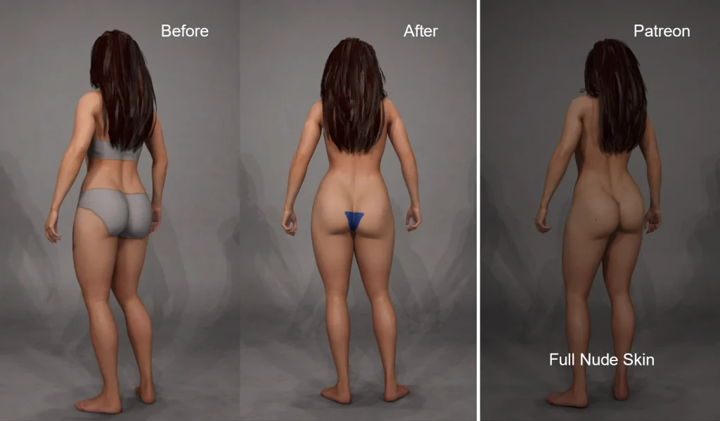 - デフォルトの下着 または完全なヌードスキンを削除します –