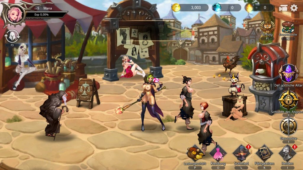 町のNPC (マスコット、召使いの女の子、鍛冶屋の女の子、村の女の子、魔女)