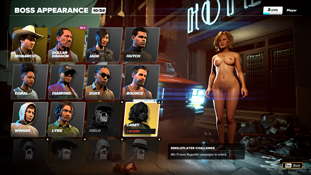 Crime Boss: Rockay City(クライムボス ロックシティ)の【キャラクター ケイシー(Casey)の衣装を削除し、キャラクターを裸の状態】に変更するエロMOD。