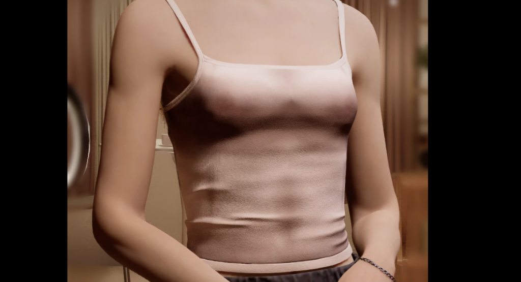自然な乳揺れ、乳首の質感、胸の陰影まで丁寧に作り込まれており、立ち姿や動作中でも官能的な存在感を放つ。全裸よりも“あえて見せない下半身”とのコントラストがフェティッシュ欲を刺激。