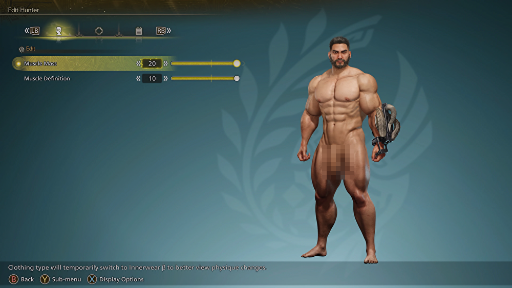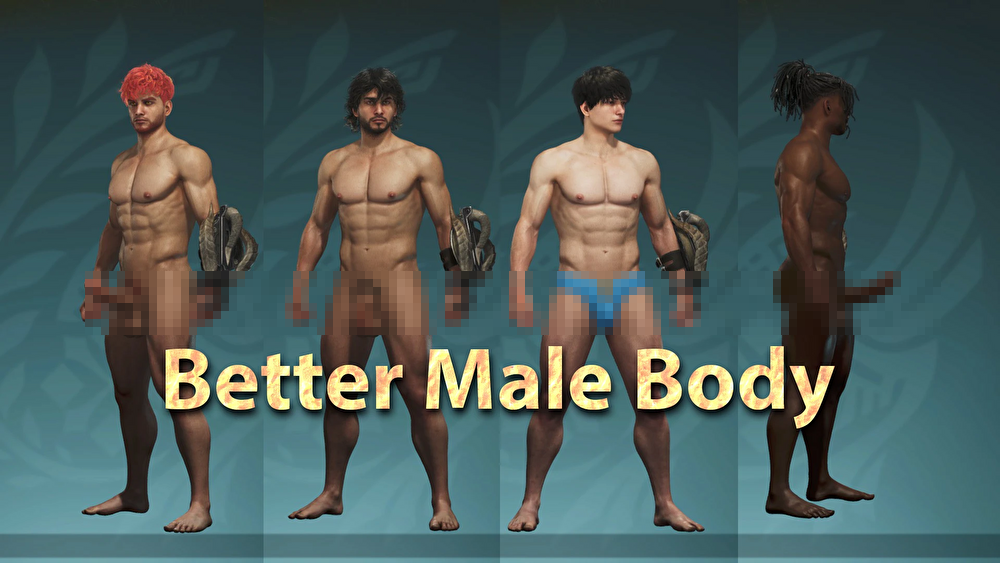 モンスターハンターワイルズの【男性の体型を全裸ヌード】に変更するエロMOD。