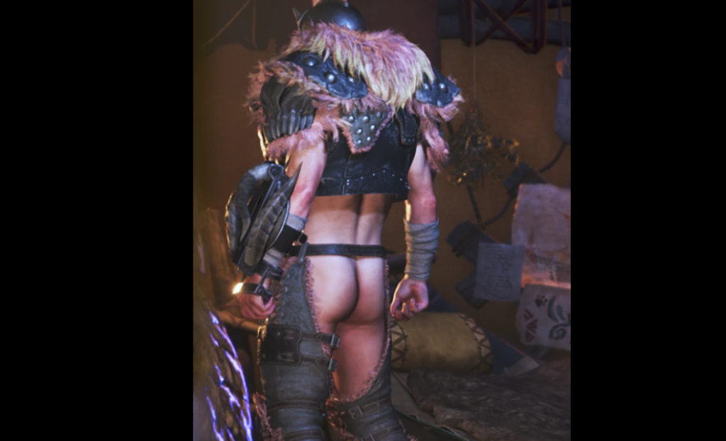 モンスターハンターワイルズの男性キャラ向けに【筋肉質なボディモデルとセクシーなTバック下着を組み合わせた】をエロMOD。
