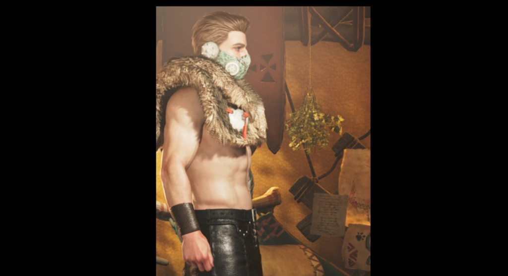 原装備の野性味ある毛皮デザインを活かしつつ、胸部・腹部・太もも・ヒップを大胆に露出させたBMB(Better Male Body)体型に対応