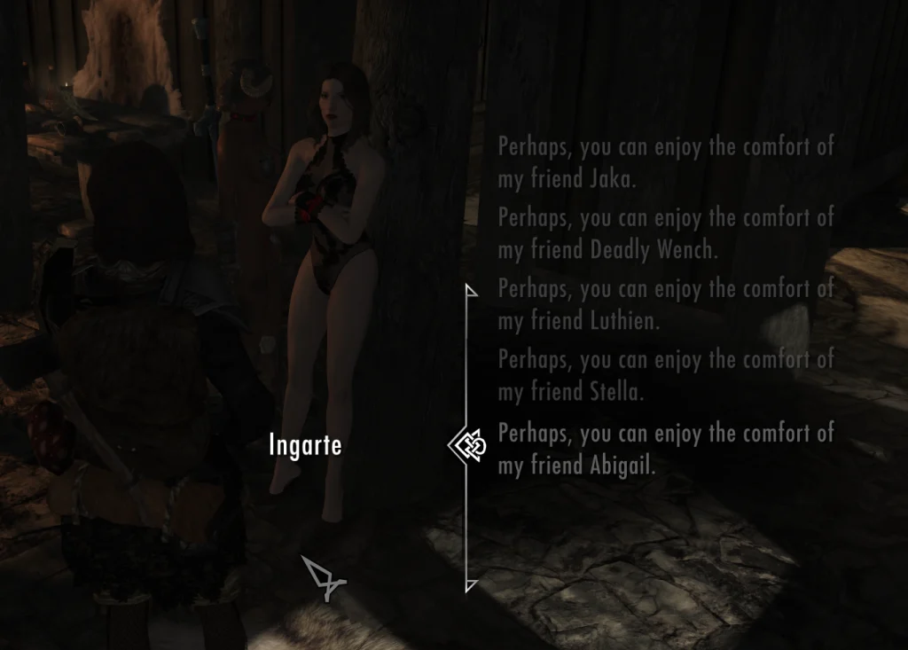 スカイリム全土での売春システムを導入。SexLab対応で、宿屋・街角・ダンジョンなどで客引きが可能となり、イベントや会話で客との交渉・性行為が展開される。