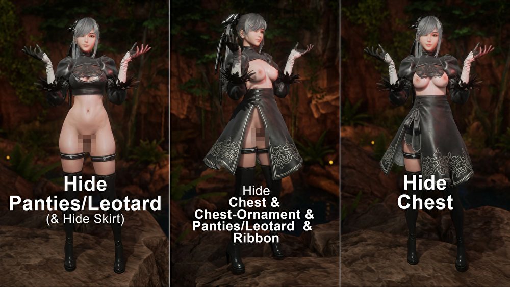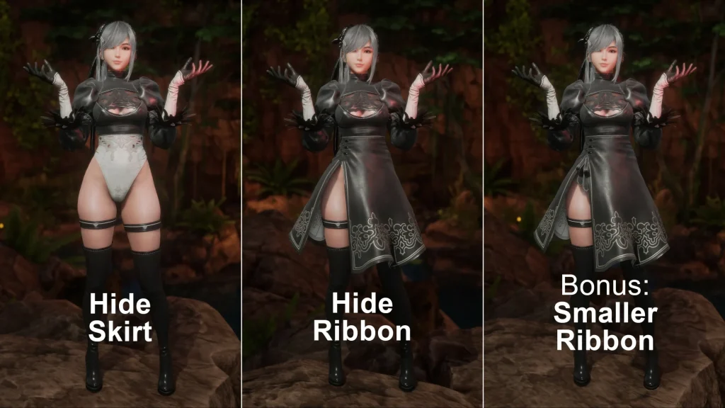 「YoRHa Unofficial Ceremonial Attire – Bottomless」は【NieR:Automata風のヨルハ礼装を大胆にアレンジし、下半身を完全に露出させた背徳仕様】に変更するエロMOD。