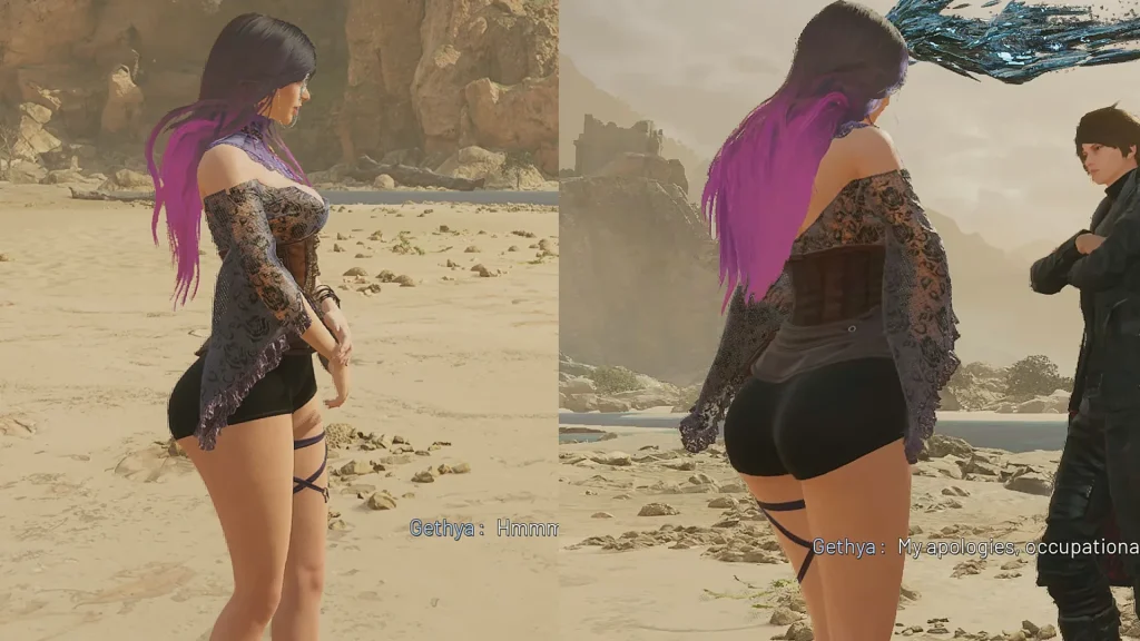 『No skirt Gethya』は【ゲシアの衣装からスカート部分を取り除き、代わりにトップスと相性の良い厚手のショートパンツ姿】に変更するエロMOD。