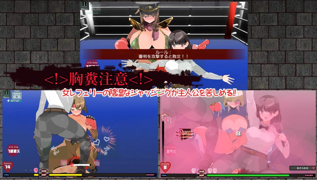 ゲームシステムはかなり簡単でパンチやキックボタンを押すだけでのシステムになっており、格闘ゲームとしての面白さは期待できないレベルだがストレスが溜まる物ではないのでエッチ前の軽いゲームとして割り切ろう笑