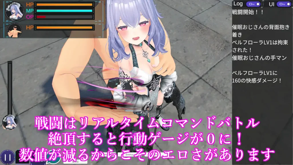立ち絵・HCGはぬるぬる動くアニメーション付きで、戦闘中もダメージやデバフで服破れ・重傷・発情・失禁などの状態変化がリアルタイムで反映される。